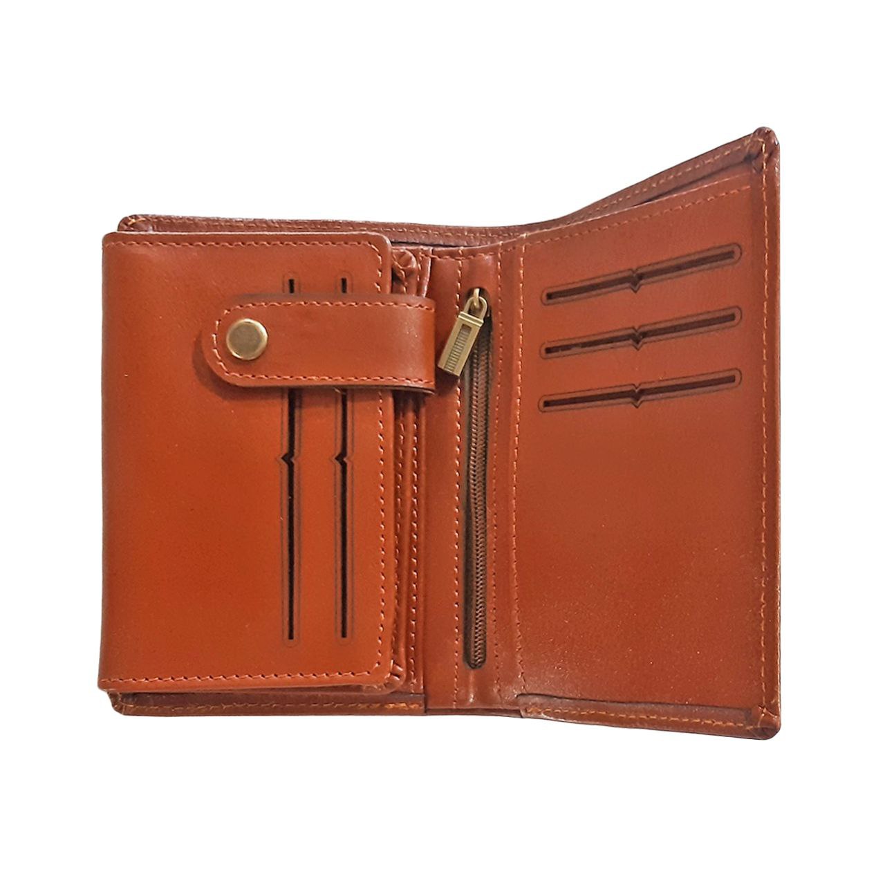 کیف پول نیم کتی بسیار پرکار دو البوم داخل دکمه دار چرم طبیعی کد ۵۰۸
